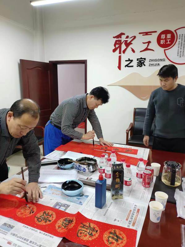 在春节来临之际实业公司工会邀请万基书法爱好者书写春联400余副,将喜迎春节的年味和新春祝福送给各位职工。