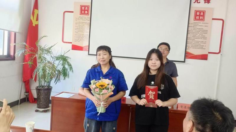 实业公司常务副总经理兼工会主席赵永强在讲话中提到:薪旺公司自2022年起开始推行职工子女升 学奖励政策,至今已实施三年,共奖励21人,发放奖金5万元,充分彰显了公司对职工子女的关爱之情。他鼓励各位学子在新的征程中牢记初心、坚守信念、奋发进取,切勿辜负公司与家庭的殷切期望。