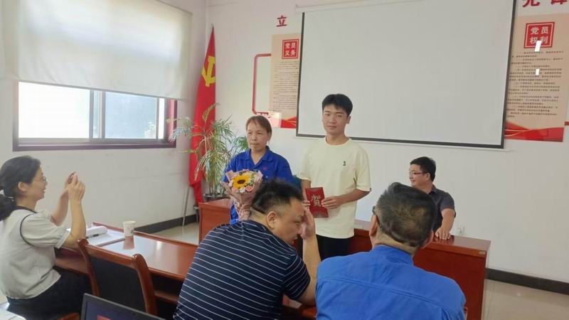 2024年8月23日,薪旺实业2024年职工子女升 学奖励活动于公司会议室隆重举行。实业公司常务副总经理兼工会主席赵永强、副总经理兼工会副主席贾景献莅临现场,炭素公司总经理胡伟子、包装公司总经理徐信伟以及职工与其子女共同参与了此次奖励活动。